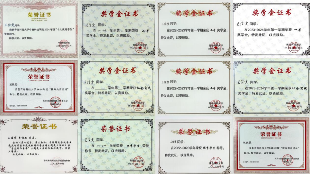 自入学以来,王佳雯同学始终秉持严谨的学习态度,顺利通过全部所学课程的考核,综合测评成绩位居专业前茅。她不仅刻苦学习德语,取得了优异成绩,同时顺利通过了全国大学英语四级与六级考试。