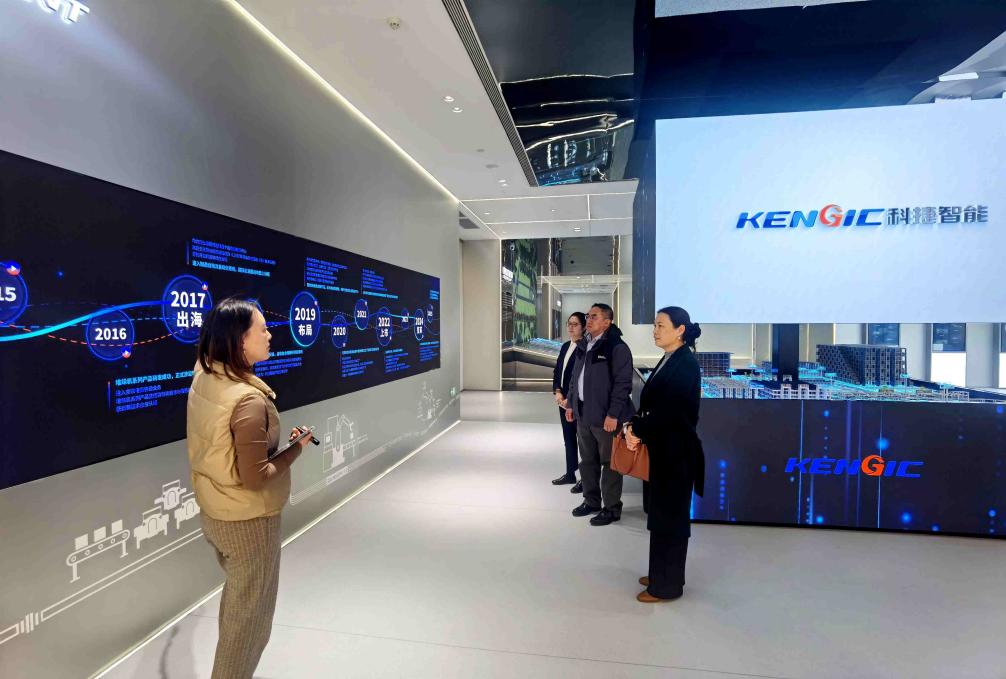 韩海青一行首先到青岛崂应创新科技有限公司进行调研。该公司负责人张建波详细介绍了企业发展历程、主营业务、生产规模及党建工作情况,并陪同参观国家人工智能与生态环保产业园。在科捷智能科技股份有限公司参观时,韩海青一行认真听取了工作人员关于企业文化的全面介绍,深入了解人才需求,并深入车间一线开展实地调研。最后,韩海青一行前往青岛高新区青年企业家协会,与协会校友企业举行座谈。韩海青代表学院向校友们致以关心与慰问,感谢他们长期以来对学院发展的大力支持。张建波代表青年企业家协会对学院到访表示欢迎。双方就深化校企合作、搭建人才培养与就业实践平台等事宜进行了深入交流。