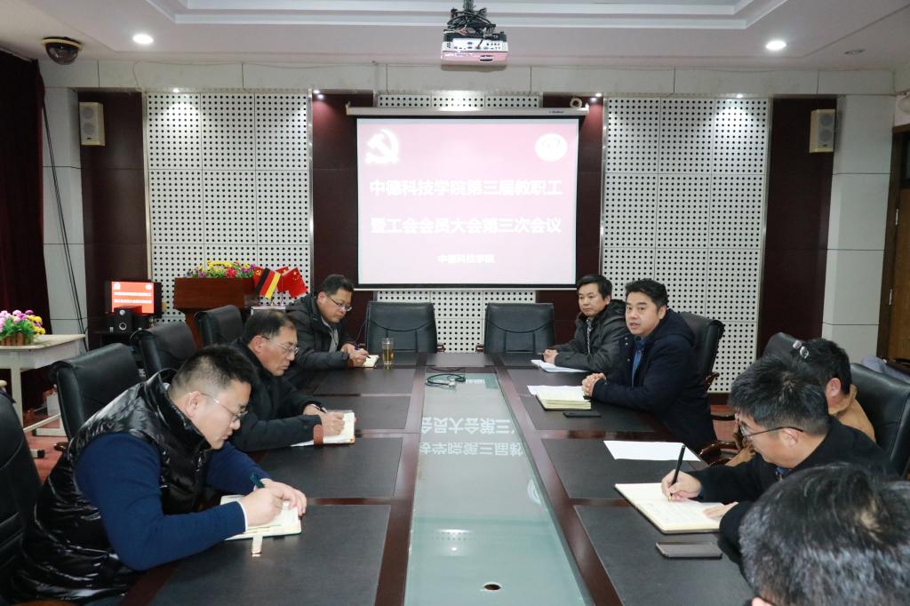 12月31日下午,中德科技学院在学院会议室召开第三届教职工暨工会会员大会第三次会议,学院党政领导、全体教职工参加会议。