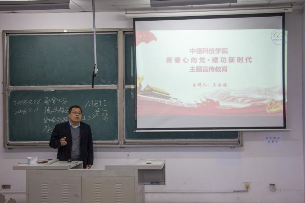 3月19日下午,中德科技学院在崂山校区弘毅楼E201开展“青春心向党·建功新时代”活动,学院党总支副书记王永波,学工办老师,学院学生干部、心理委员、心音使者、2018级学生参加了培训。