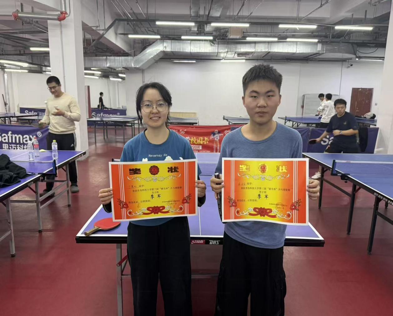 近日,青岛科技大学第三届“新生杯”乒乓球联赛在崂山校区北苑活动中心圆满落幕。学院积极组织学生参赛,最终荣获两项季军,充分展现了同学们卓越的竞技风采与昂扬向上的体育精神。