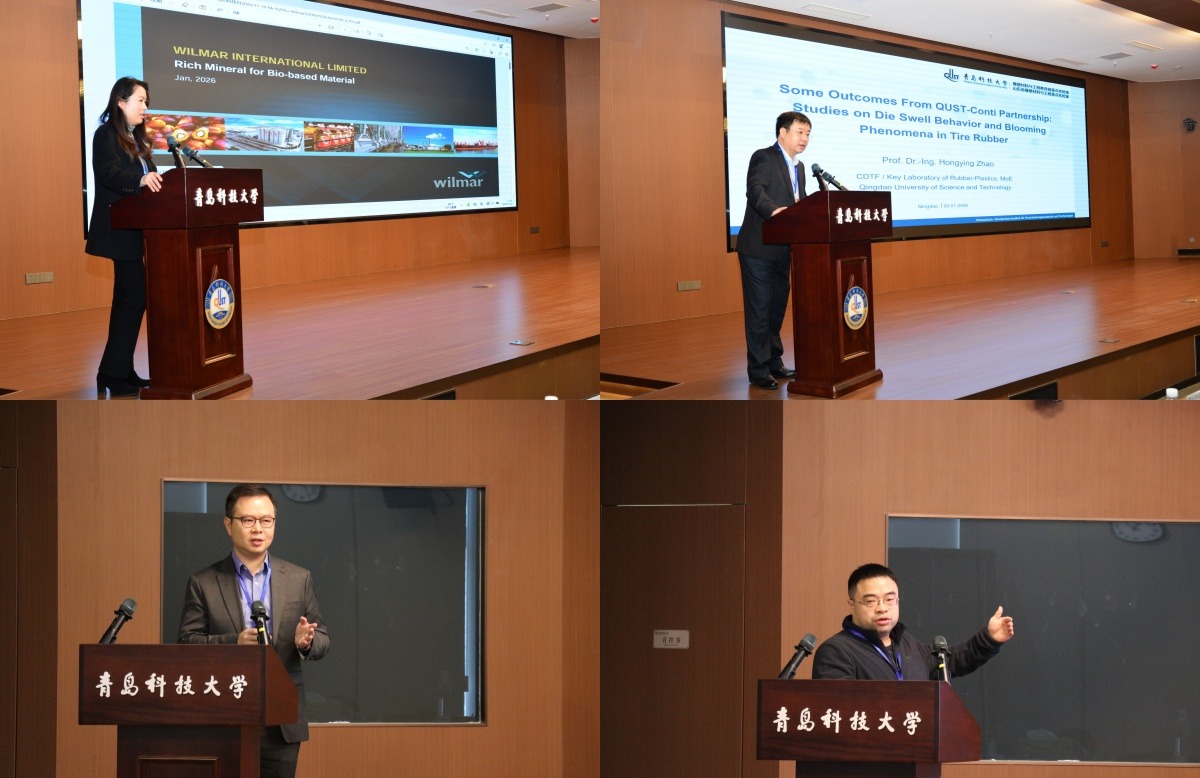 学术报告分别由中德科技学院院长王泽鹏、高分子科学与工程学院副院长刘恒和德国大陆集团全球材料测试技术总监Prof. Dr. Jorge Lacayo-Pineda主持。中国科学院兰州化学物理研究所裴先强研究员、大陆集团全球材料测试技术总监Prof. Dr. Jorge Lacayo-Pineda、新加坡丰益国际集团俞晓渊经理、青岛科技大学中德科技学院副院长赵洪滢教授、高分子科学与工程学院刘克博士、Eco InfinicCo.,Ltd总经理JeffShiue、大陆集团马牌轮胎公司工厂密炼专家黄君伟先生分别作专题报告。报告人重点围绕技术协同突破、产业绿色升级等关键方向,分享了其在轮胎产业技术研发中的最新成果与实践经验,为破解行业共性技术难题、探索中德技术合作新路径凝聚了共识汇聚了智慧。