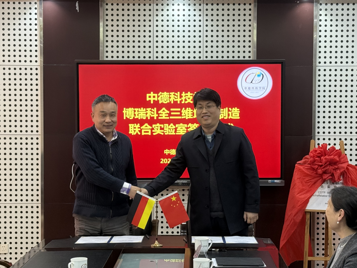 3月12日下午,中德科技学院与青岛博瑞科增材制造有限公司全三维增材制造联合实验室签约仪式在学院会议室举行。青岛博瑞科增材制造有限公司总经理周晓宾、副总经理袁也,中德科技学院院长王泽鹏、党委书记韩海青、副院长郭建章、副院长赵洪滢、实验中心主任赵文捷出席仪式。