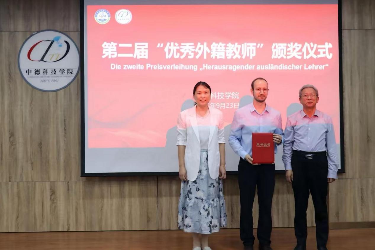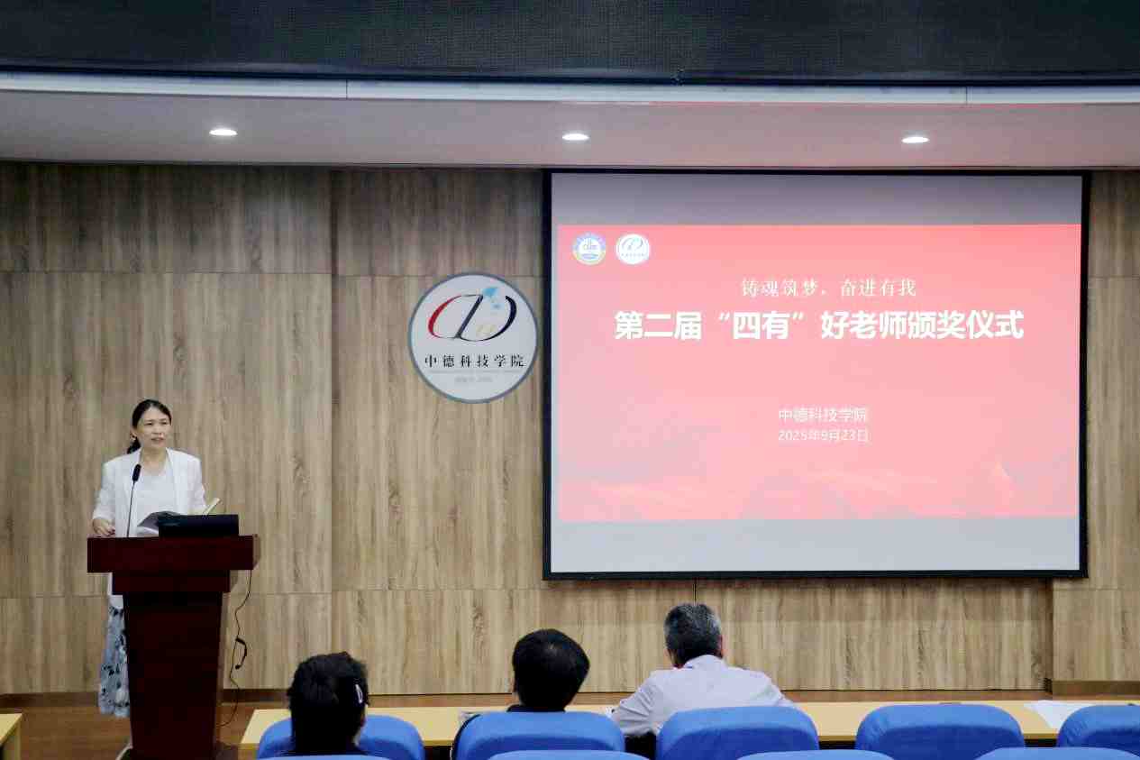 会议伊始,韩海青宣读了《关于表彰中德科技学院2025年度第二届“四有”好老师、“优秀外籍教师”的决定》。她指出,本届评选工作严格遵循《中德科技学院“四有”好老师、“优秀外籍教师”评选办法(试行)》要求和流程,最终评选出在教育教学、科研创新、师德师风等方面表现突出的“四有”好老师和“优秀外籍教师”。她强调,全体教职工要以受表彰的“四有”好老师为榜样,自觉践行教育家精神,在教育教学中追求卓越、在科研探索中勇攀高峰,以高尚师德、扎实学识为学生树立正面典范,凝心聚力推动学院教育教学质量与整体发展水平再上新台阶。
